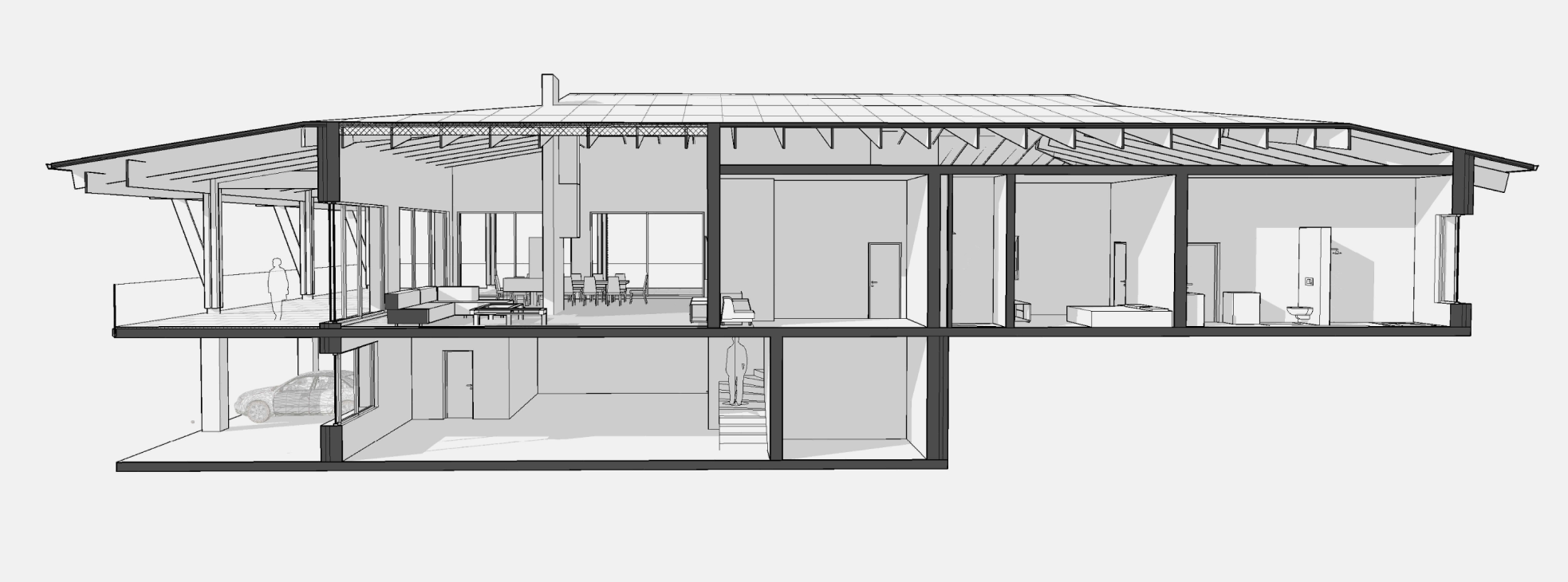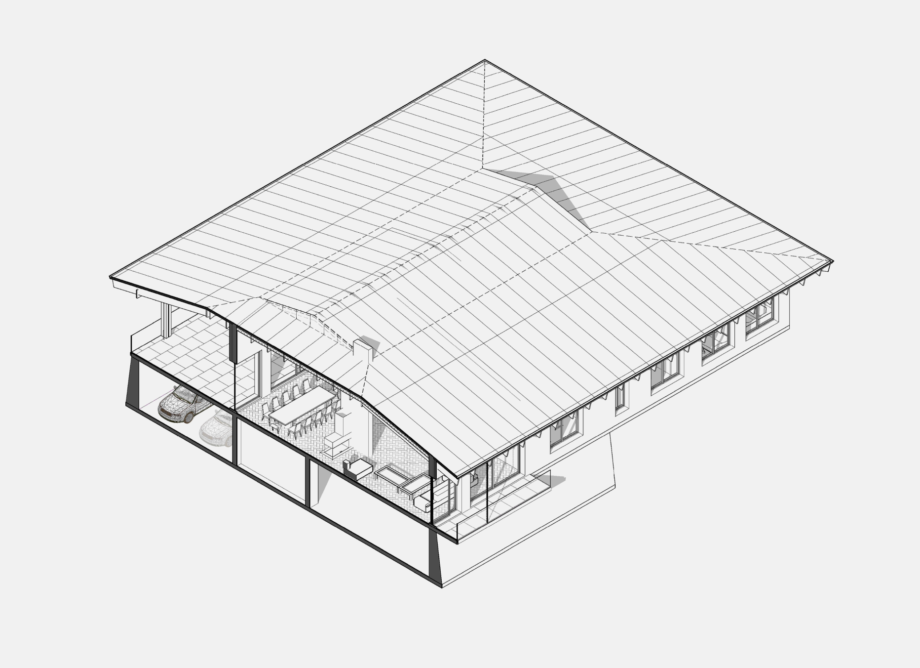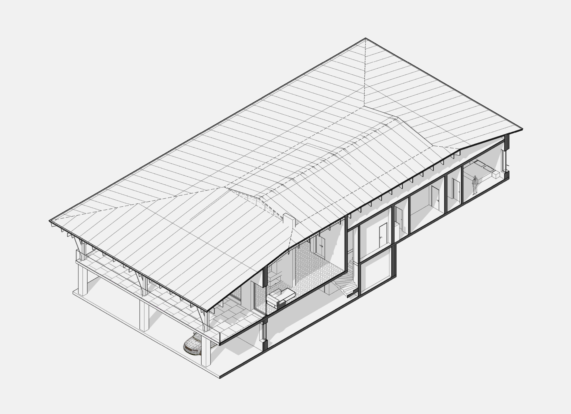 Проект представляет собой современный загородный дом, органично вписанный в природный ландшафт Карелии. Здание расположено на живописном участке, окружённом хвойным лесом, на склоне с видом на долину. Архитектурная концепция основана на гармоничном взаимодействии с природой, минимальном вмешательстве в рельеф и использовании природных материалов.
